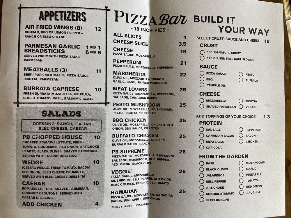 Pizza Bar San Marcos Menu (Update 2025)